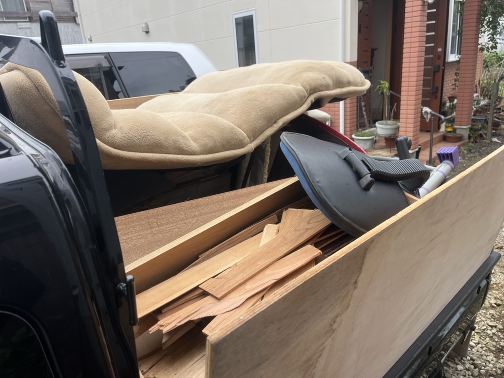 タンスなどの大型の家具は解体し、その他の不用品は分別し回収させていただきました。